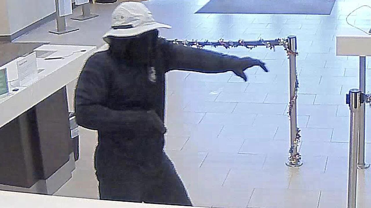 FBI Special Agent Michael D. Leverock released surveillance images that show the robber wore a black sweatshirt decorated with an icon of the Spanish professional soccer club.