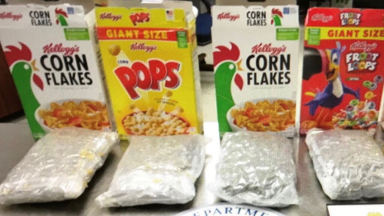 More than six pounds of marijuana likely grown in the southeastern region of the U.S. were in cereal boxes, cans of crackers and inside an iced tea container at MIA.