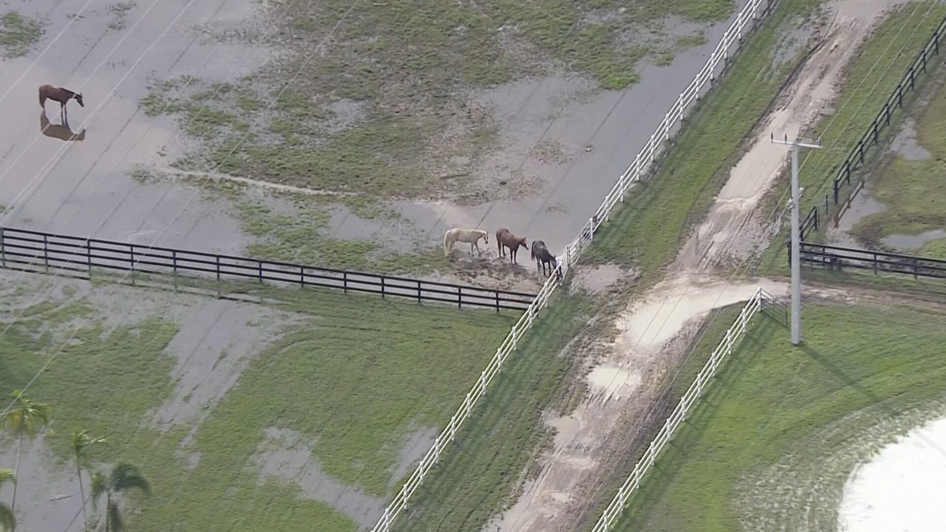 Sky 10 over horses standing in muddy water in Southwest Ranches. (WPLG)