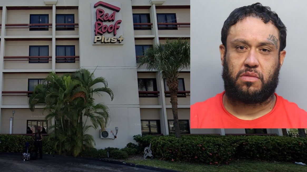 The suspect, who Miami Springs police identified as Agustin Rodriguez, was arrested just after the violent incident unfolded at the Red Roof Plus Miami Airport, located at 3401 NW 42nd Ave., shortly before 6 a.m.